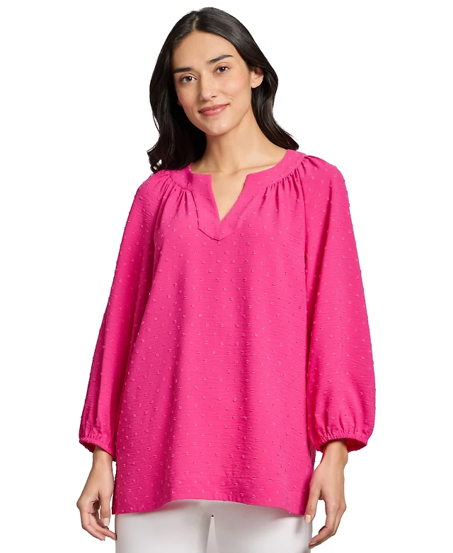 Jones New York Women's 3 Quarter Sleeve Notch Neck Popover Dotted Blouse