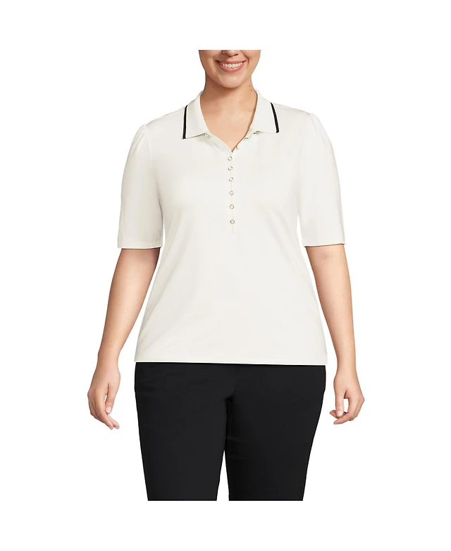 Lands' End Plus Size Elbow Sleeve Lightweight Jersey Side Tie Blouse