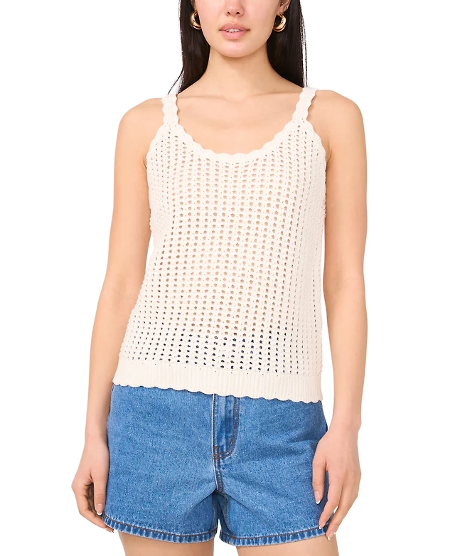1.state Women's Sleeveless Embroidered Hem Blouse