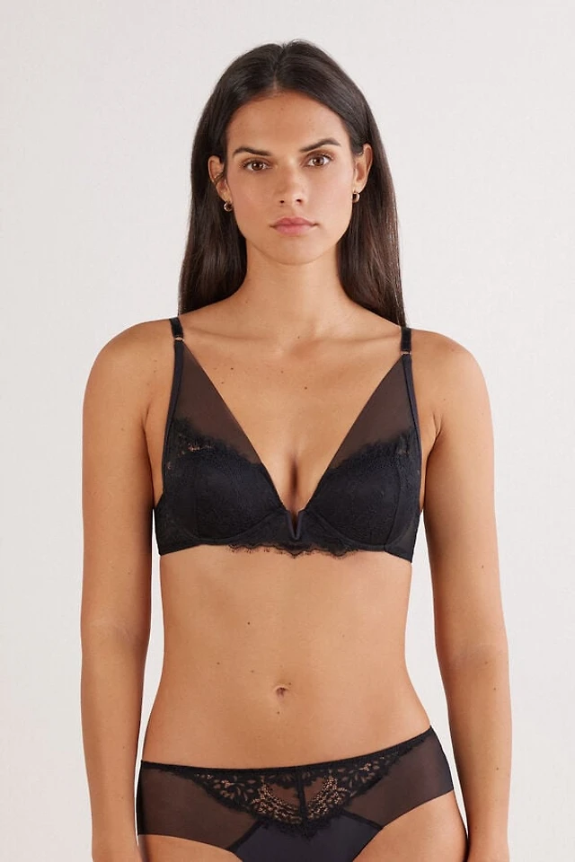 Tiziana Wireless Plunge Triangle Bra Silk and Lace