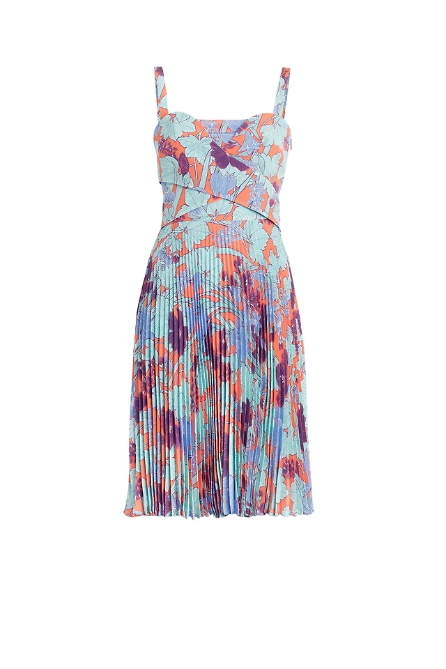Sheer-sleeve dress with plissé pleats