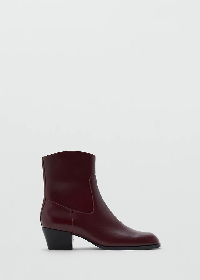 Leather cowboy ankle boots with seams