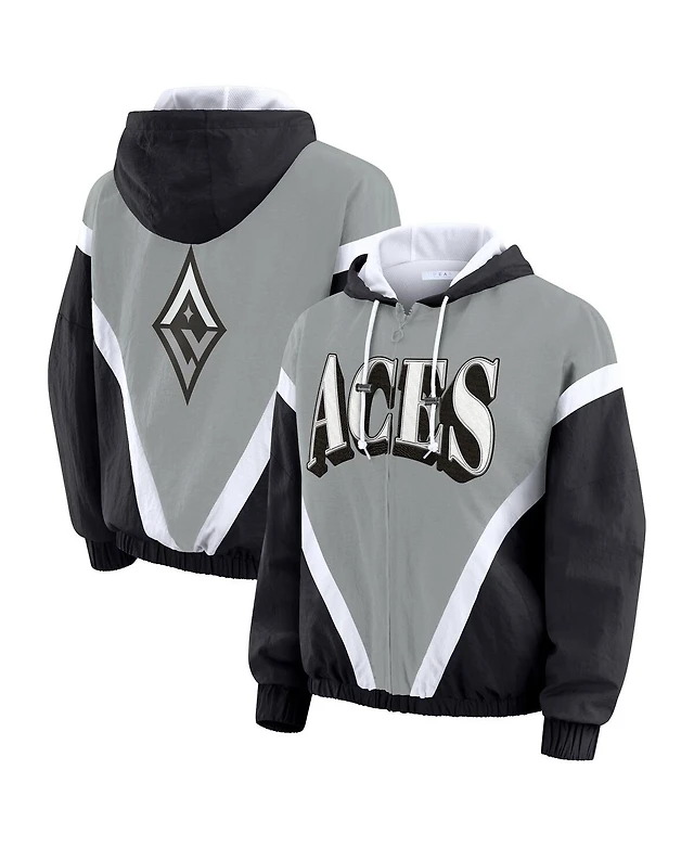 Wear by Erin Andrews Women's Black/Gray Las Vegas Aces Color Block Full-Zip Windbreaker Jacket