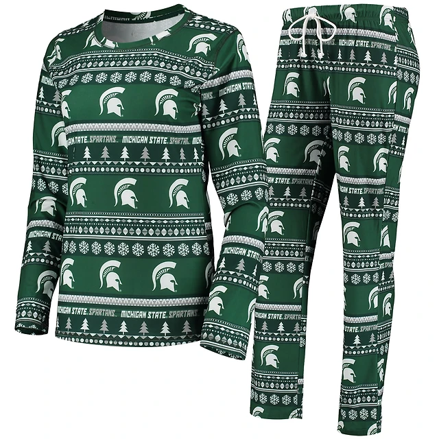 Women's Concepts Sport Green Michigan State Spartans Holiday Long Sleeve Top & Pants Sleep Set