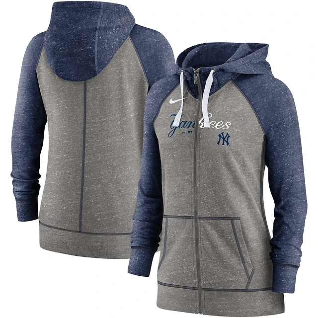 Women's Nike Heather Charcoal/Heather Navy New York Yankees Split Wordmark Gym Vintage Raglan Lightweight Full-Zip Hoodie