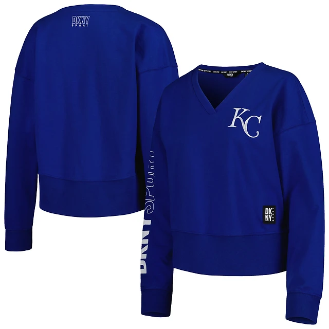 Women's DKNY Sport Royal Kansas City Royals Lily V-Neck Pullover Sweatshirt