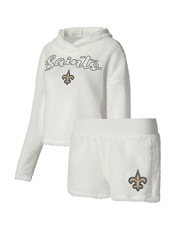 Women's Concepts Sport White New Orleans Saints Fluffy Pullover Sweatshirt and Shorts Sleep Set