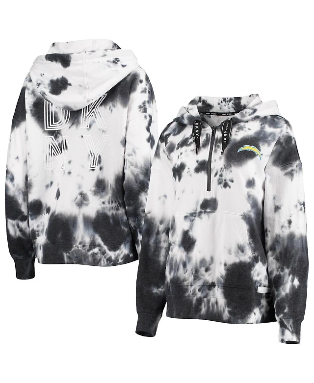 Women's Dkny Sport White and Black Los Angeles Chargers Dakota Oversized Tie-Dye Half-Zip Hoodie