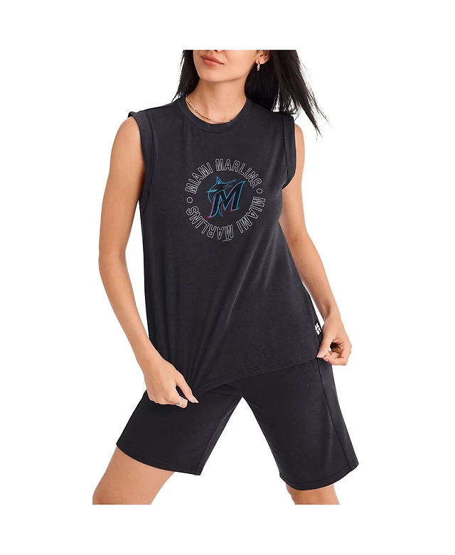 Women's Dkny Sport Black Miami Marlins Madison Tri-Blend Tank Top