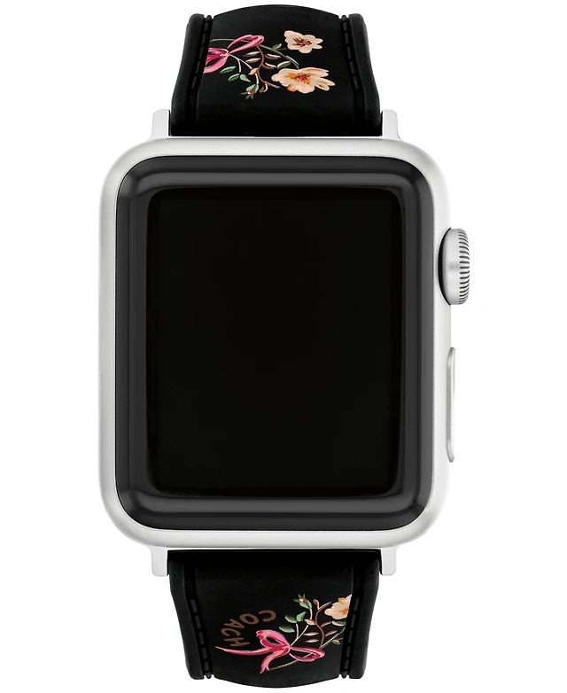 Coach Women's Black Floral Print Silicone Strap for Apple Watch 38mm, 40mm, 41mm
