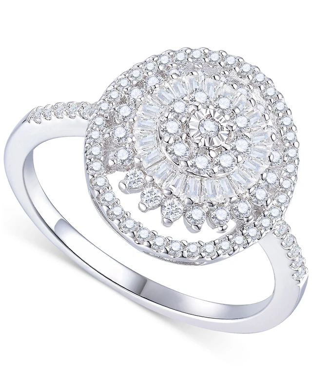 Effy Diamond Round & Baguette Openwork Statement Ring (3/4 ct. t.w.) in 14k White Gold
