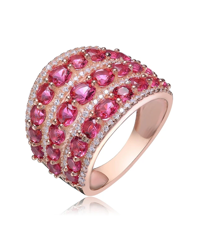 Genevive 18K Rose Gold Plated Red Cubic Zirconia Accent Ring
