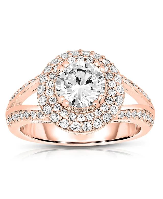 Cubic Zirconia Double Pave Halo Ring (7-1/2 ct. t.w.) 18K Gold Plated Sterling Silver