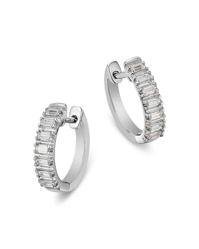 Diamond Baguette Huggie Hoop Earrings in 14K Gold