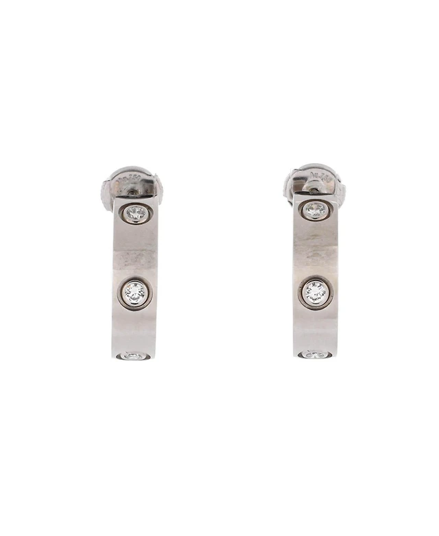 Pre-Owned Cartier 5.5mm Love 6 Diamonds Hoop Earrings 18K White Gold with Diamonds