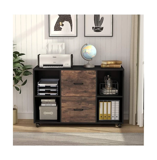 Famapy 3-Tier Open Shelves, Bookcase Accent Storage Cabinet with 2 Drawers