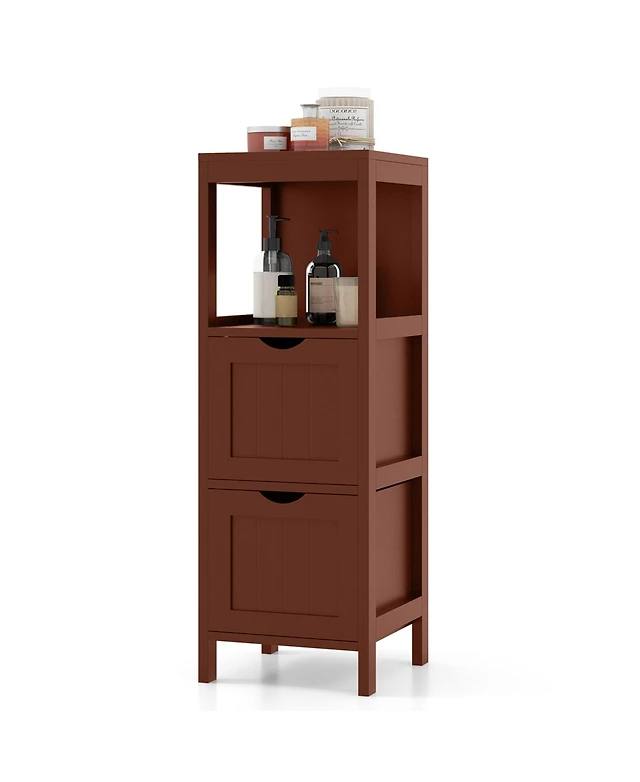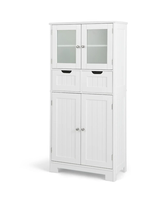 Gymax Bathroom Floor Storage Cabinet Freestanding Cupboard Pantry w/ 2 Drawers
