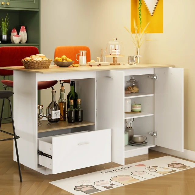 Maison Boucle 74.5 Kitchen Island With Pull Out Dining Table Rolling Storage Cart With 2 Drawers Cabinets Spice Rack Maison Boucle