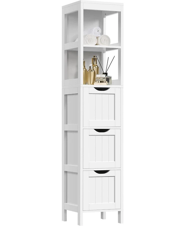 Vanirror Bathroom Storage Cabinet, Slim 12" Depth, 3 Drawers & 2 Shelves, 56"H x 12"W, White