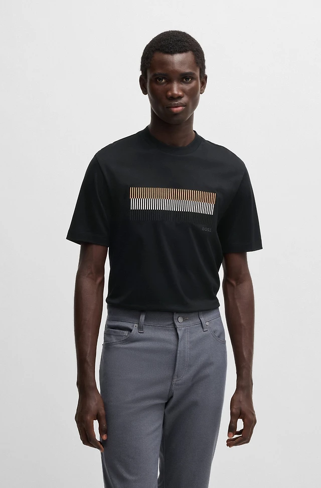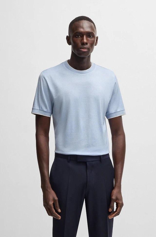 Mercerized-cotton T-shirt with houndstooth jacquard