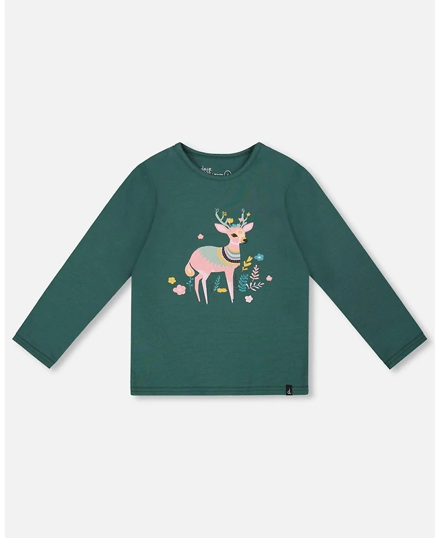 Deux par Little Girls Cotton Long Sleeve T-Shirt Dark Green - Toddler|Child