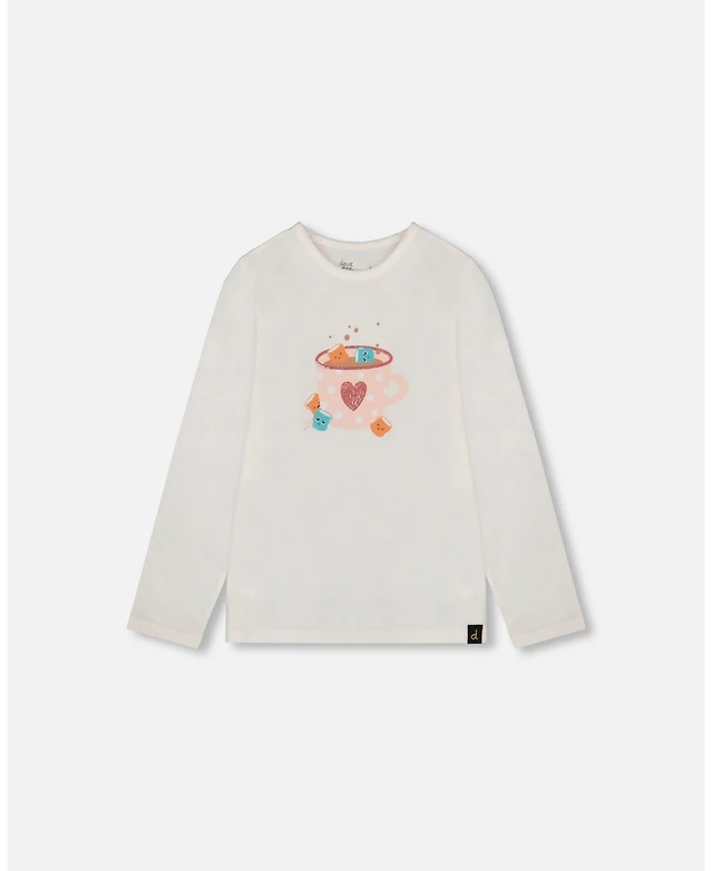 Deux par Big Girls Cotton Long Sleeve T-Shirt Lavender with Sequin Unicorn