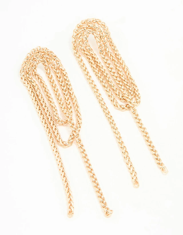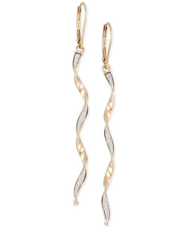 Italian Gold Twist Glitter Long Drop Earrings in 14k Gold