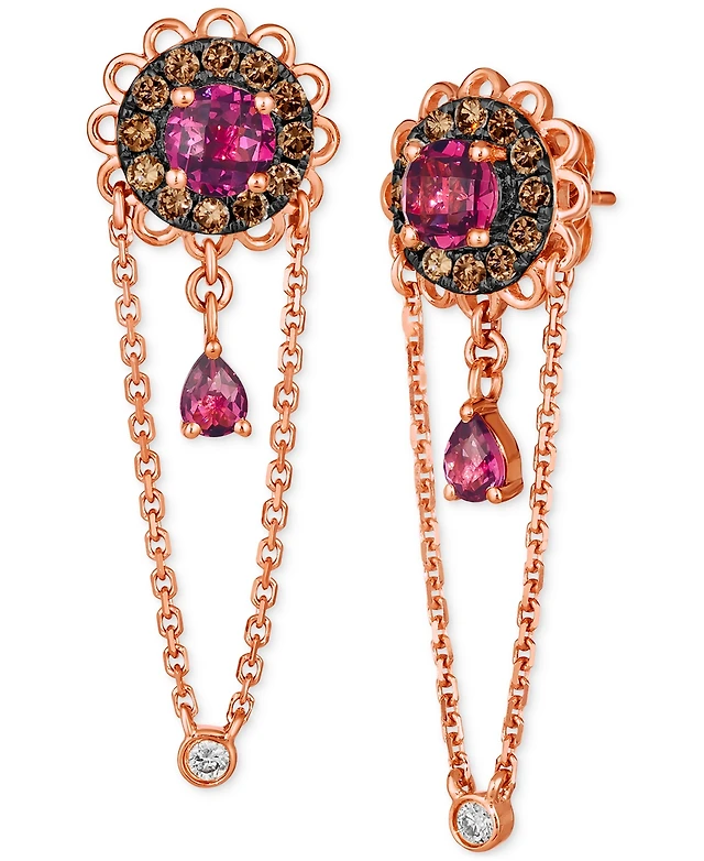 Le Vian Raspberry Rhodolite (1-1/3 ct. t.w.), Chocolate Diamonds (3/8 ct. t.w.) & Nude Diamonds (1/20 ct. t.w.) Linear Drop Earrings in 14k Rose Gold