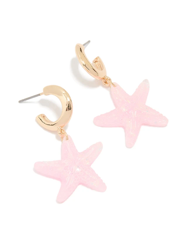 Gold Pink Starfish Hoop Earrings