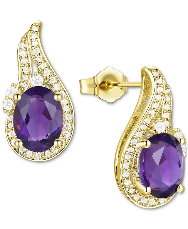 Amethyst (2-1/20 ct. t.w.) & Lab-Grown White Sapphire (3/8 Swirl Stud Earrings 14k Gold-Plated Sterling Silver (Also Additional Gemsto