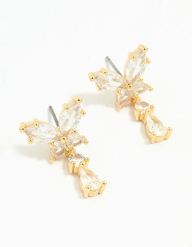 Gold Plated Cubic Zirconia Butterfly Teardrop Earrings