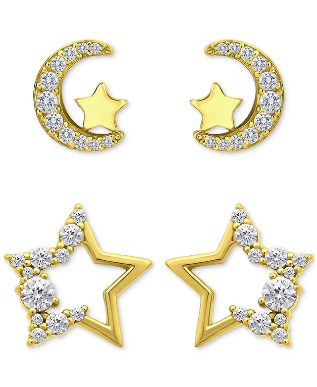 Giani Bernini Cubic Zirconia Half Moon & Star 2-Pc. Set Stud Earrings (1-3/8 ct. t.w.) 18k Gold over Sterling Silver, Exclusively at Macy's