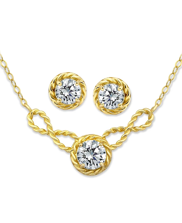 Giani Bernini 2-Pc. Set Cubic Zirconia (2-7/8 ct. t.w.) Infinity Rope Frontal Necklace & Round Border Stud Earrings 18k Gold Over Sterling Sil