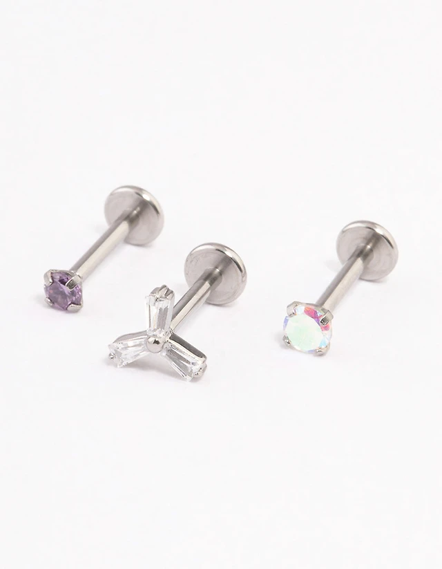 Surgical Steel Cubic Zirconia Mixed Threadless Flat Back Studs 3-Pack