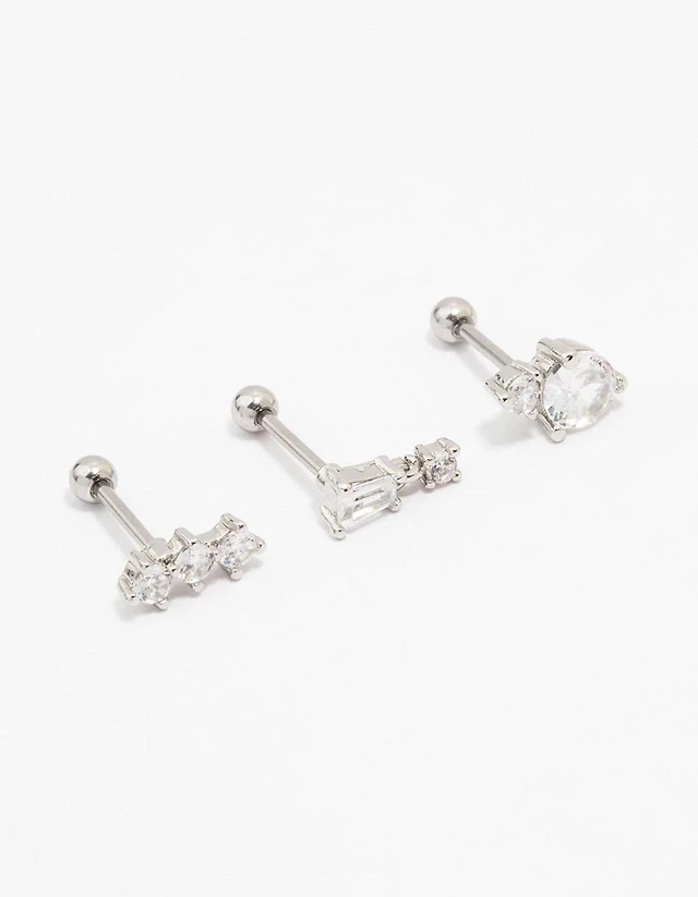 Surgical Steel Cubic Zirconia Ear & Body Jewellery 3-Pack