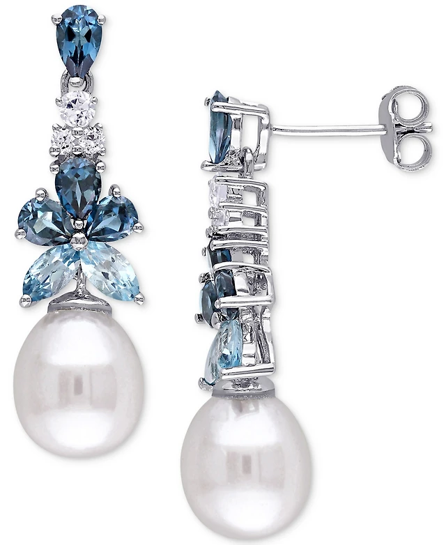 Effy Blue Cultured Freshwater Pearl (12 x 10mm), Multi-Gemstone (1-3/4 ct. t.w.) & Diamond (1/8 ct. t.w.) Drop Earrings in 14k Rose Gold