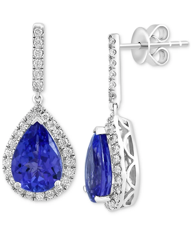 Effy Multi-Gemstone (4-1/3 ct. t.w.) & Diamond (3/8 ct. t.w.) Pear Halo Drop Earrings in 14k Gold