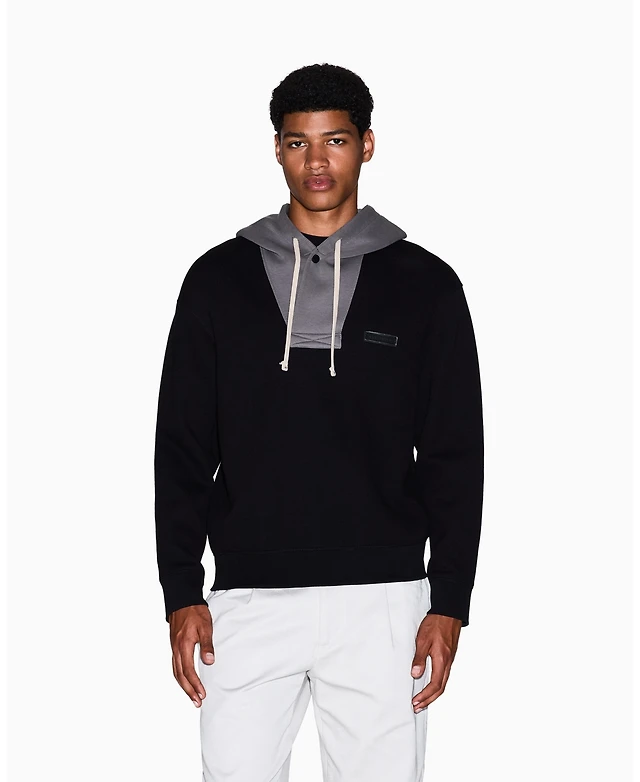A|X Armani Exchange Men's Cozy Lab Color Block Pique Hoodie Sweatshirt