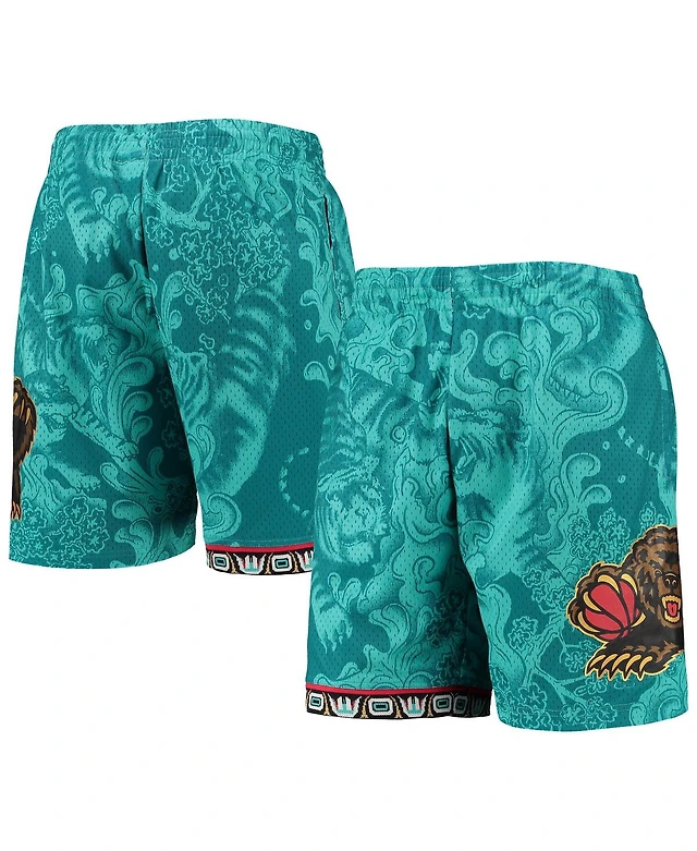 Men's Mitchell & Ness Turquoise, Black Vancouver Grizzlies Hardwood Classics 1998 Split Swingman Shorts