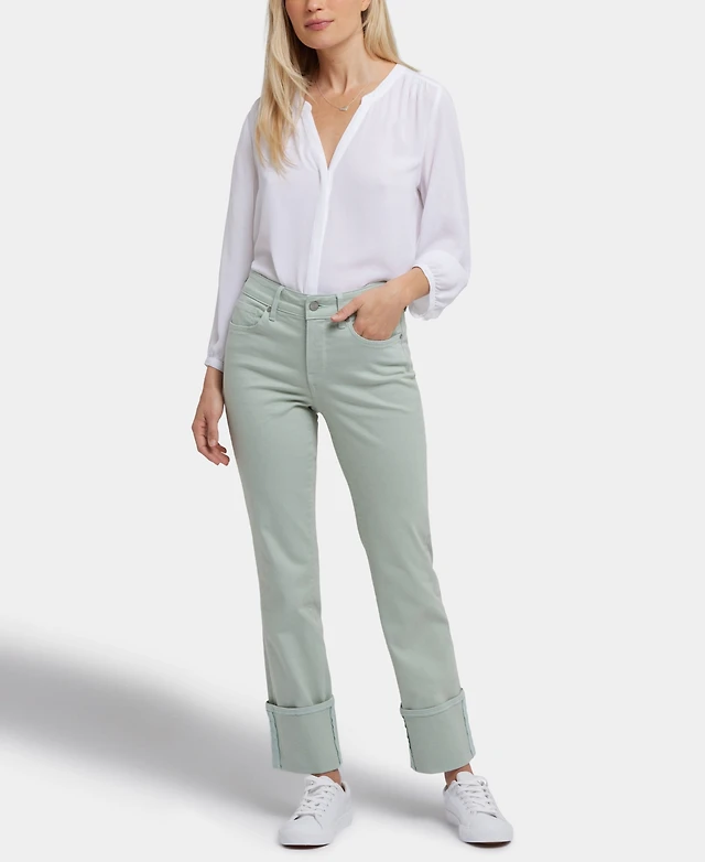 Modenaire Women's Wide-Leg Button-Fly Cuffed Patch Pocket Jeans