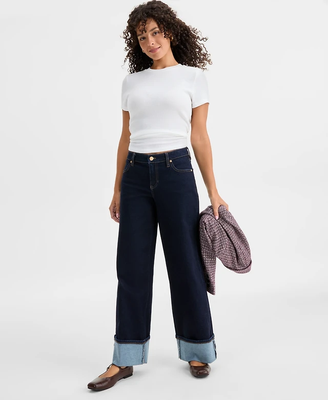 Steve Madden Women's Tre Denim Mid-Rise Wide-Leg Jeans