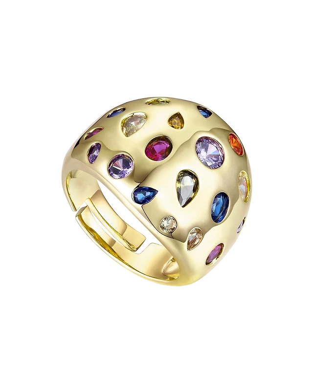 Ra 14k Gold Plated with Rainbow Cubic Zirconia Dome Ring