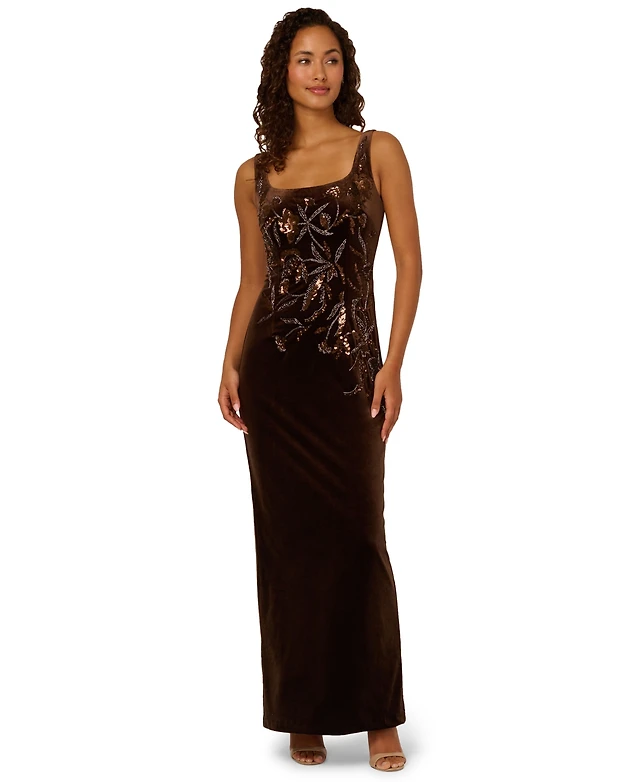 Adrianna Papell Women's Velvet Beaded Long Dress