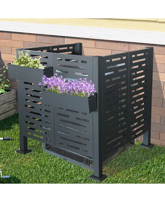Mondawe 4ftx2ft Air Conditioner Fence Metal Privacy Fence Cover with 3- Fence Panels