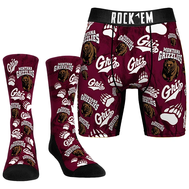 Men's Rock Em Socks Montana Grizzlies All-Over Underwear and Crew Socks Combo Pack