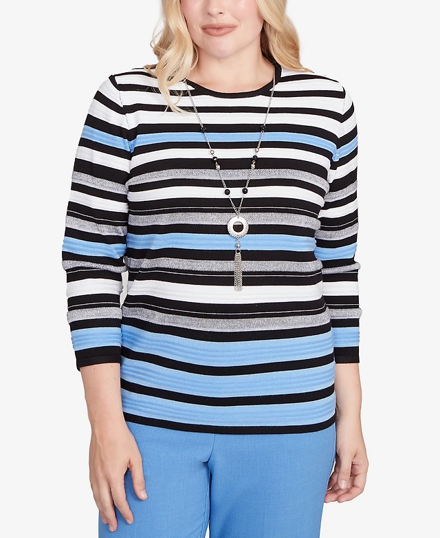 Alfred Dunner Women's Textured Stripe Sweater with Necklace