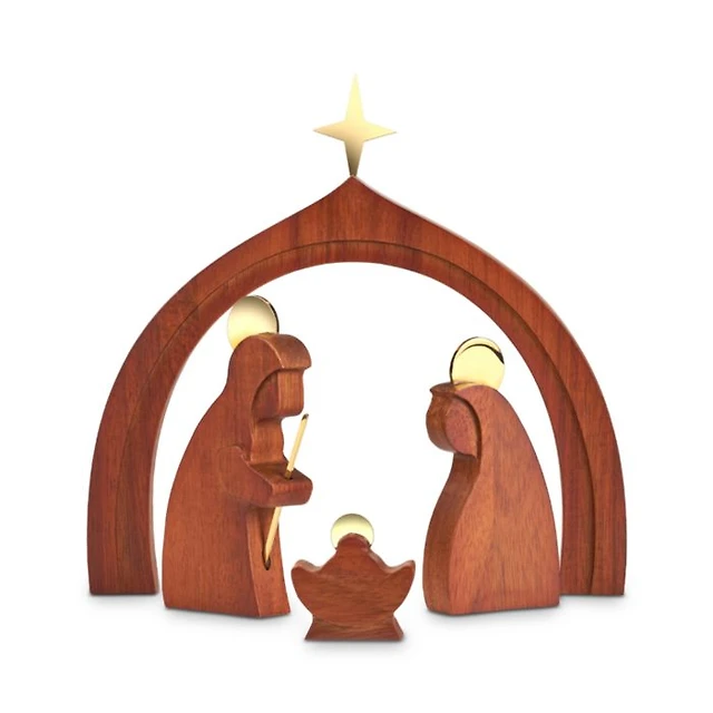 Wooden Shepherd with Lambs & Palm Tree Figurines, Set of 4