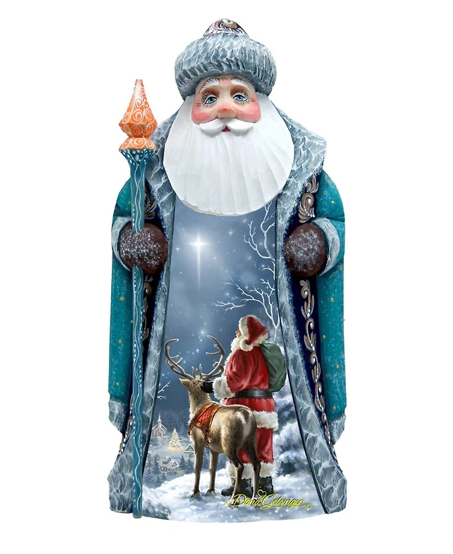 G.DeBrekht Woodcarved and Hand Painted Santa Midnight Yuletide Chorus with Bag Figurine