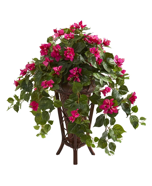 Nearly Natural Bougainvillea Artificial Plant in White Tower Planter