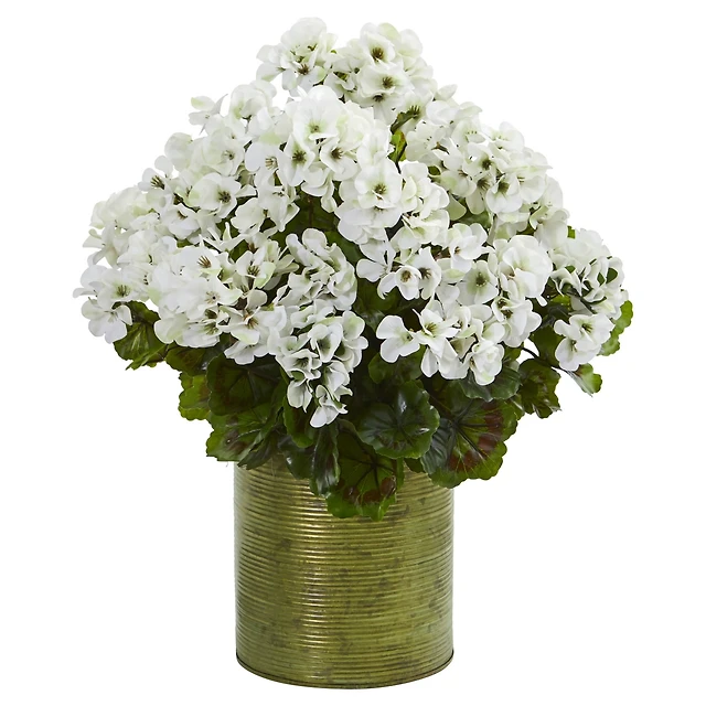 Nearly Natural Geranium Artificial Plant Metal Planter Uv Resistant - Indoor/Outdoor